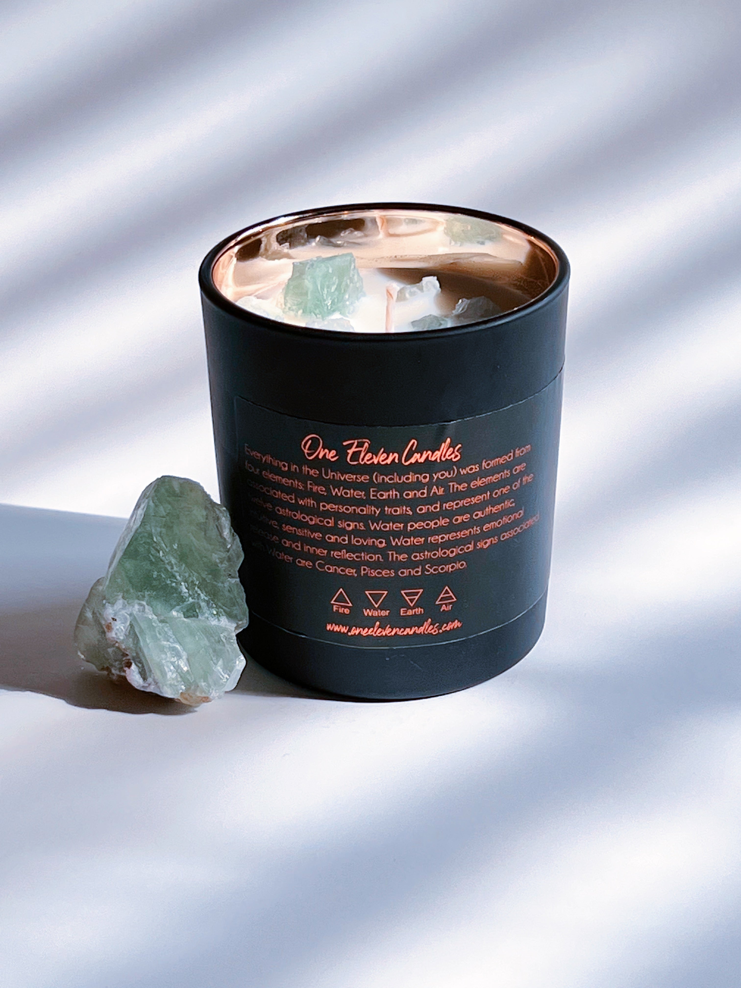 When lighting your candle, first, focus your energy. Go to a quiet place and take time to think about what the oils and crystals were created to do.