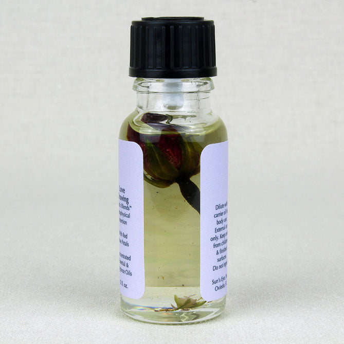 Love Drawing Oil, featuring Rose Buds with sweet and floral top notes in a base of Rose, is formulated to attract love. Mystic Blends Oils are created by combining herbs and oils traditionally associated with each intention.