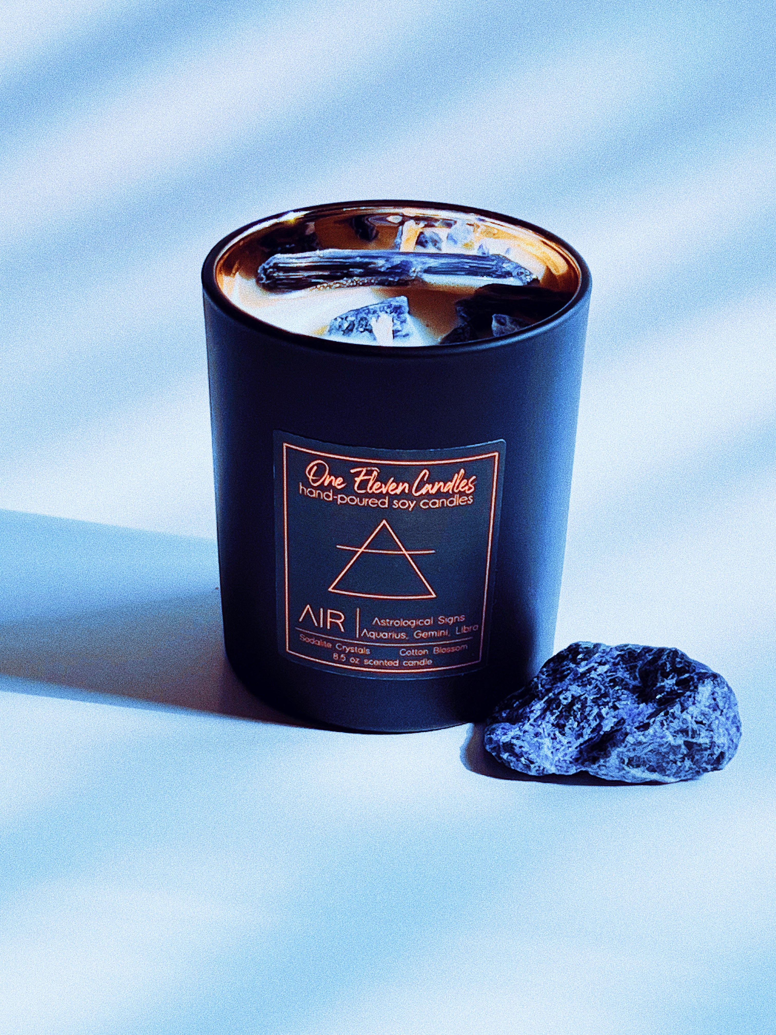 When lighting your candle, first, focus your energy. Go to a quiet place and take time to think about what the oils and crystals were created to do.
