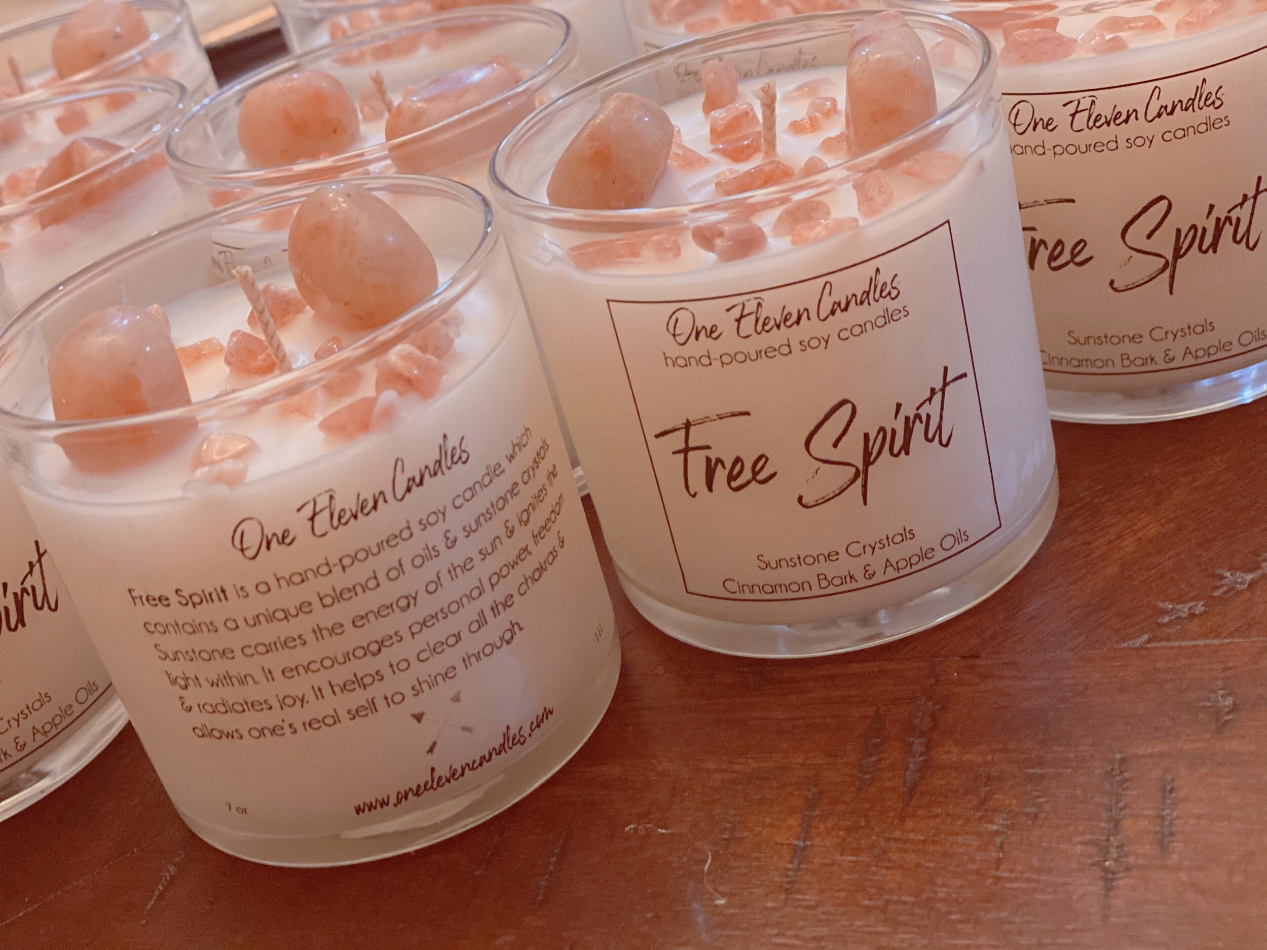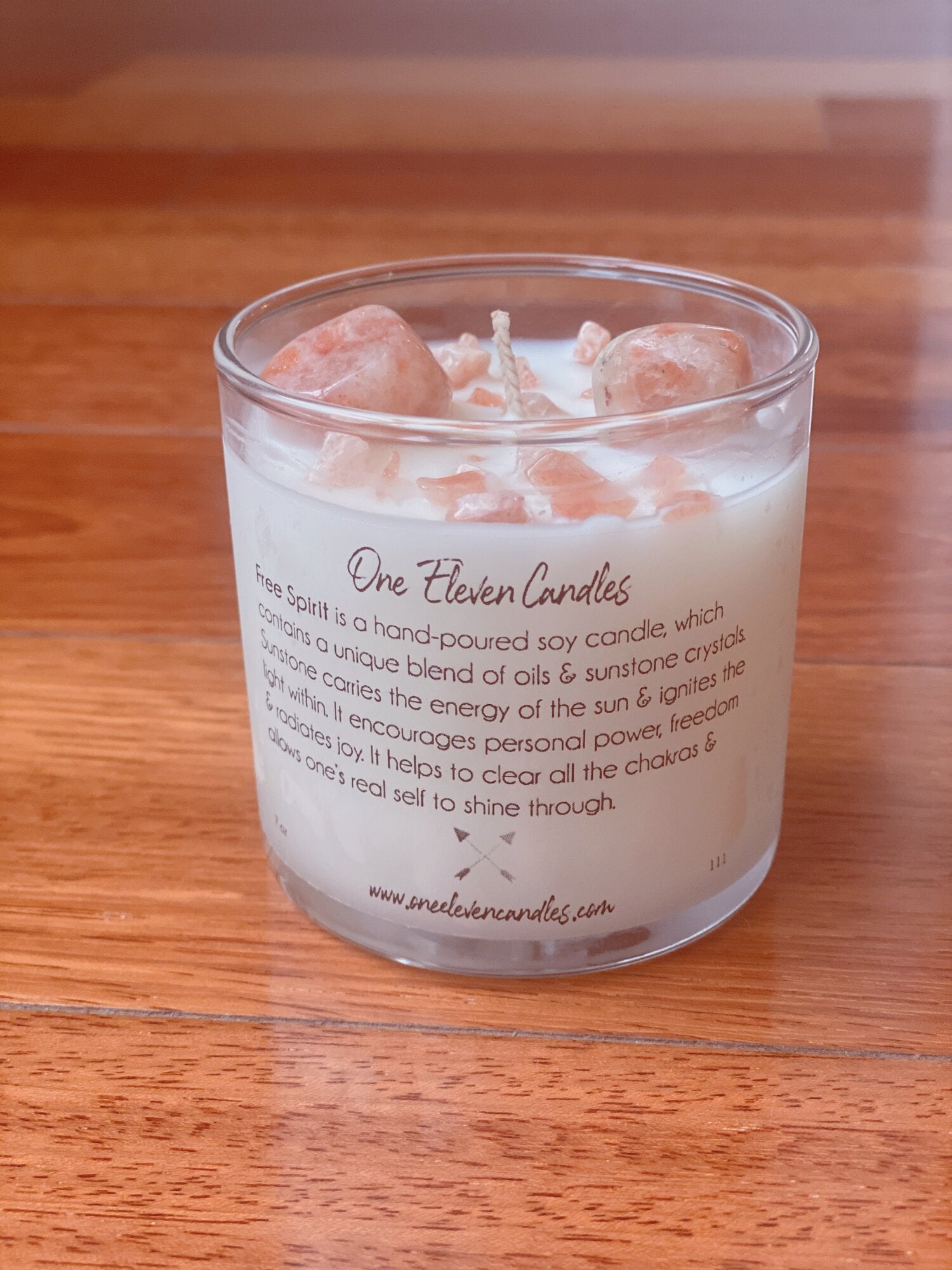 Free Spirit is a hand-poured soy candle, which contains a unique blend of oils & sunstone crystals. Sunstone carries the energy of the sun & ignites the light within. It encourages personal power, freedom & radiates joy. It helps to clear all the chakras & allows one’s real self to shine through.
