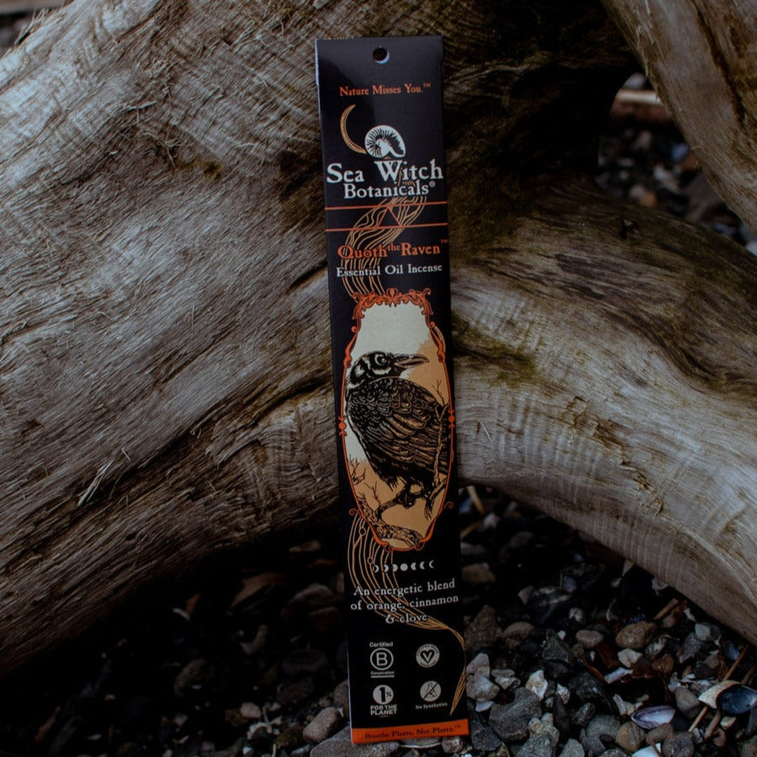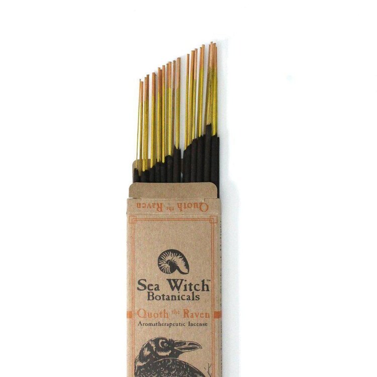 Quoth the Raven incense features an inspiring blend of clove, cinnamon, and orange essential oils. The rich, stimulating aroma is juicy, spicy, and warm.
